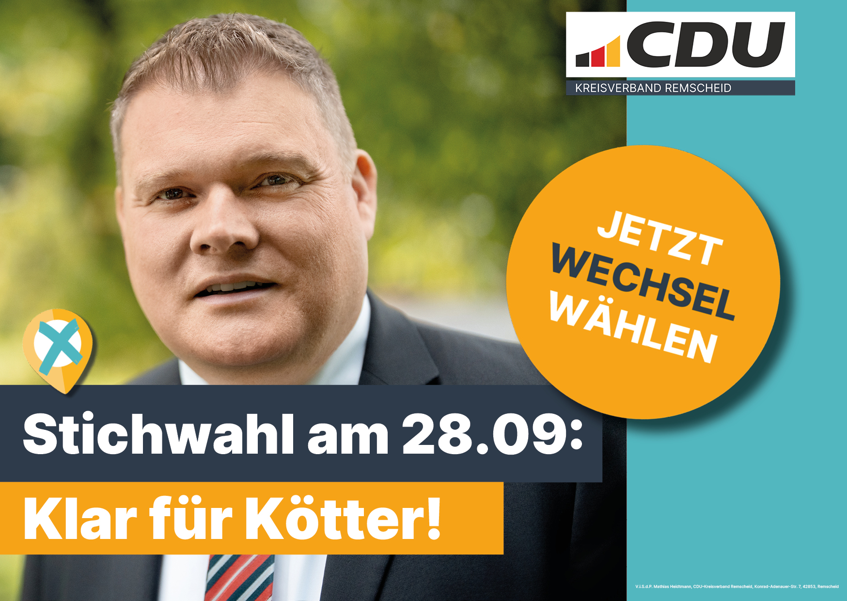 „Anfang der Woche haben wir uns in der CDU-Geschäftsstelle getroffen, um den Wahlsonntag kurz zu besprechen und vor allem festzulegen, wie wir uns auf das Endspiel am 28. September vorbereiten. Nach einer gewissen Ernüchterung am Sonntagabend war die Stimmung hierbei sehr gut. Unser großer Sitzungssaal war bis auf den letzten Platz gefüllt. Das heißt: Die Mitglieder unseres Kreisvorstands werden mit unseren übrigen Parteimitgliedern in den nächsten Tagen noch einmal alles geben und die PS auf die Straße bringen. Die Anwesenden haben sich bei unserem Spitzenkandidaten für sein Engagement in den letzten Wochen bedankt und ihm die volle Unterstützung für den Endspurt zugesichert. Nach dem Motto ‚Klar für Kötter‘ werden wir nun noch zahlreiche Aktionen umsetzen“, so der CDU-Kreisvorsitzende Mathias Heidtmann.