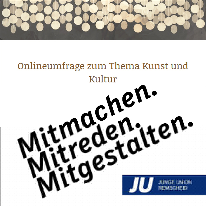 Mehr Bürgerbeteiligung kann ein Weg sein, unsere Bürger wieder mehr für unsere Stadt zu begeistern. Mit dem Thema Kultur wollen wir einen Anfang machen und starten als Junge Union Remscheid eine Online-Umfrage, wie sich die Remscheiderinnen und Remscheider ihre kulturelle Zukunft vorstellen und wünschen. Diese Umfrage wird sich bewusst an alle Bevölkerungsschichten - Jung wie Alt - richten. "Wir selbst müssen Remscheid so gestalten wie wir die nächsten 10, 20 oder 50 Jahren hier leben wollen," sagt JU Chef Mathias Heidtmann.